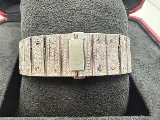 • Tarcza: Ikoniczna tarcza Cartier z cyframi arabskimi w pełni osadzonymi naturalnymi diamentami