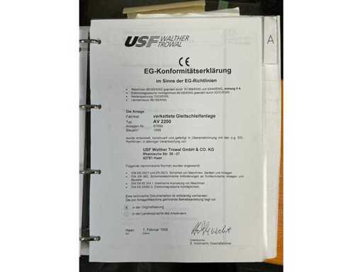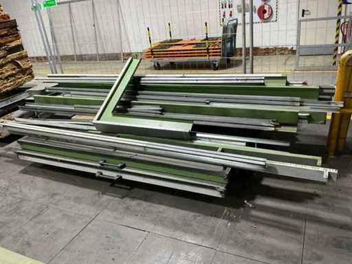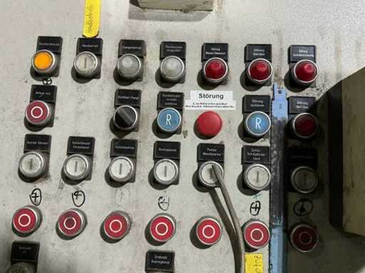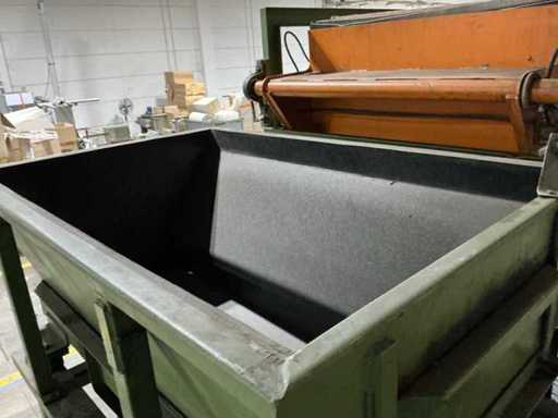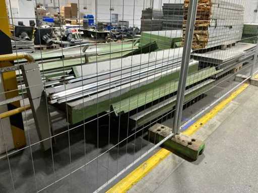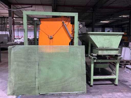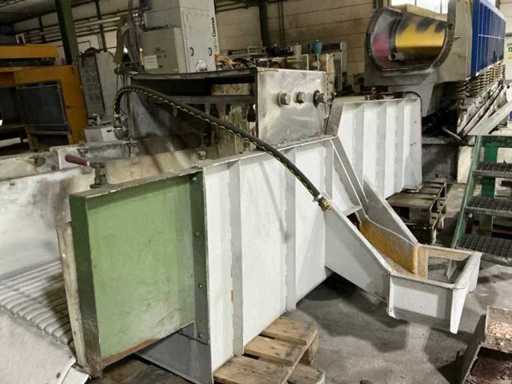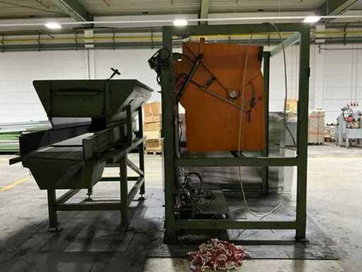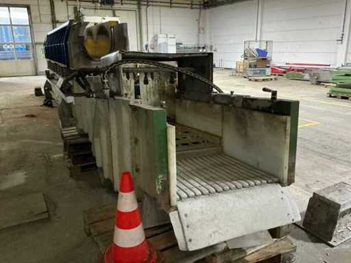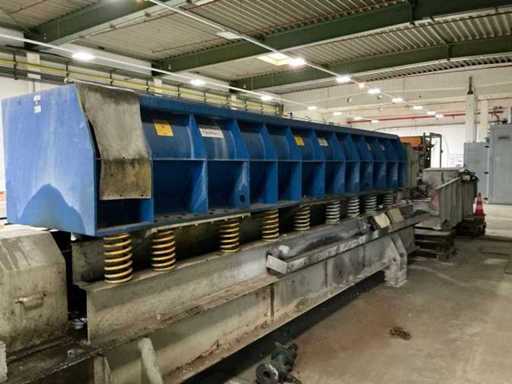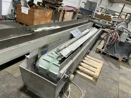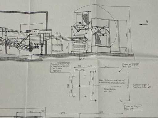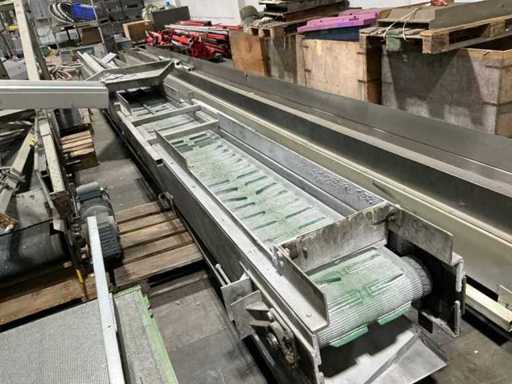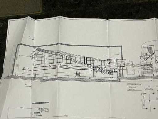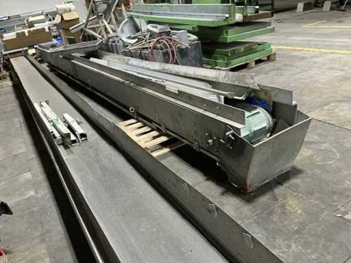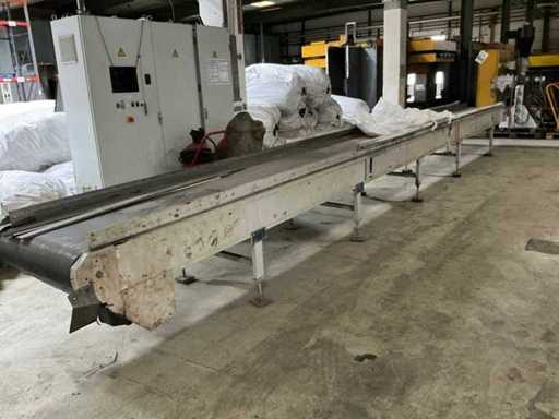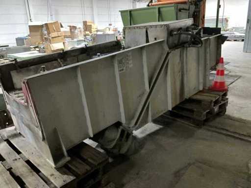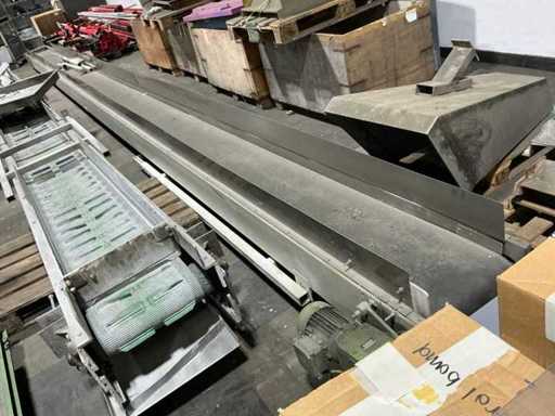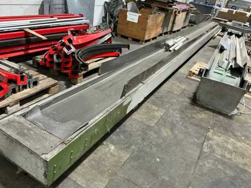 składająca się z koryta przenośnika TROWAL; urządzenie do przechylania z klapką unieruchomienia; Żłob karmiący; Pochylona taśma transportowa, NB 400 mm, długość 10650 mm; Taśma powrotna taśmy transportu ściernego nośnika KA 18539; Ogrodzenie; Szafa sterująca