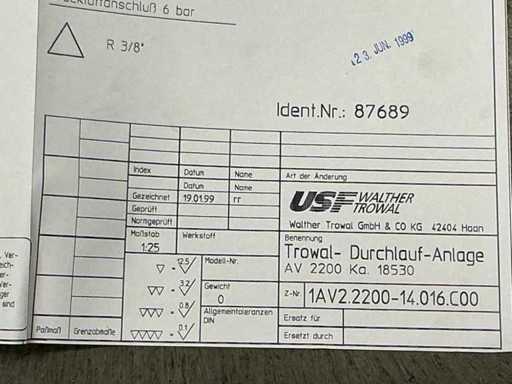 Verladebedingungen: siehe Artikelspezifikationen ACHTUNG: ZUM BETRETEN DES GELÄNDES SIND SICHERHEITSSCHUHE NOTWENDIG. ANMELDUNG BEI DER ZENTRALE VON FIRMA MAGMA Geschäftskäufer aus der Europäischen Union (EU) und Nicht-EU-Ländern (Drittländer) sind verpflichtet, auf ihren Gesamtkauf eine Kaution an Troostwijk Deutschland zu zahlen. Diese Kaution wird auf Grundlage des in der Bundesrepublik Deutschland geltenden Mehrwertsteuersatzes berechnet. Nach Bestätigung, dass die erworbene Position die EU verlassen hat, wird die Kaution an den Käufer zurückerstattet: • EU-Käufer müssen Troostwijk Deutschland eine sog. Gelangsbestätigung [laden Sie dafür die hier beigefügte Vorlage „Template_Intra-Community Supply (DE-EN)” herunter] ausgefüllt an export.de@troostwijkauctions.com zurückschicken, um die Kaution zurückerstattet zu bekommen. • Nicht-EU-Käufer müssen eine Kopie der elektronischen Ausfuhrmeldung (EX-A mit MRN - nur zur Prüfung) oder bei niedrigerem Warenwert einer abgeschlossenen Ausfuhrerklärung mit einem Stempel von der EU-Grenzzollstelle an export.de@troostwijkauctions.com zurückschicken, um die Kaution zurückerstattet zu bekommen.