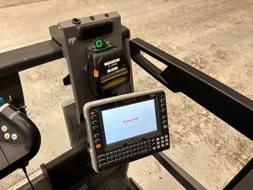 Wyposażony w: aparat z wyświetlaczem, niebieski punkt, tablet HoneyWell Thor VM1A z Androidem, skaner kodów kreskowych, port USB, wentylację oraz drukarkę etykiet zebra ZQ521.
