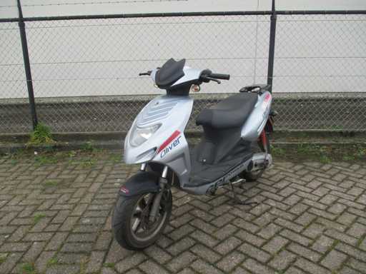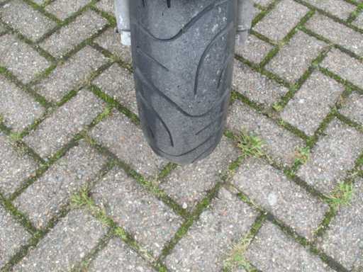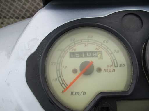 Skuter z jednym kluczem. Silnik pracuje, skuter ma ślady zużycia, stan konserwacji nieznany.