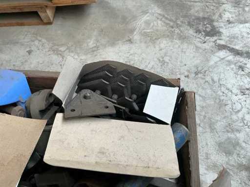 W paletowych skrzyniach, między innymi: noże, łożyska, części napędowe i paski