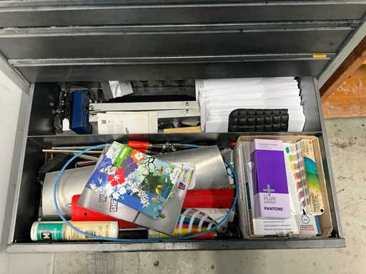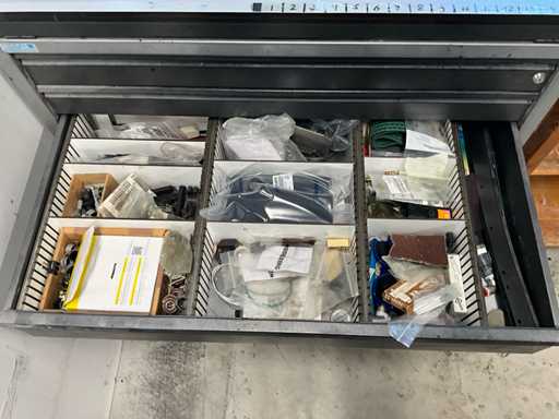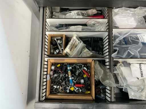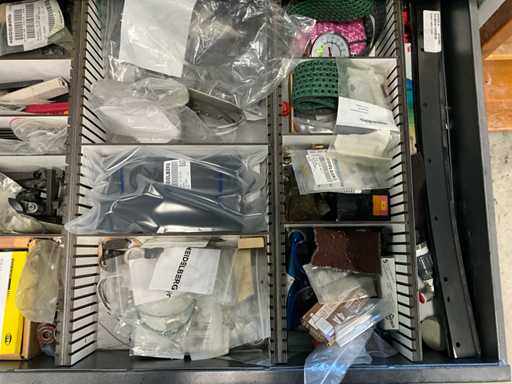 Różne rodzaje części zamiennych i akcesoriów, w tym szafki