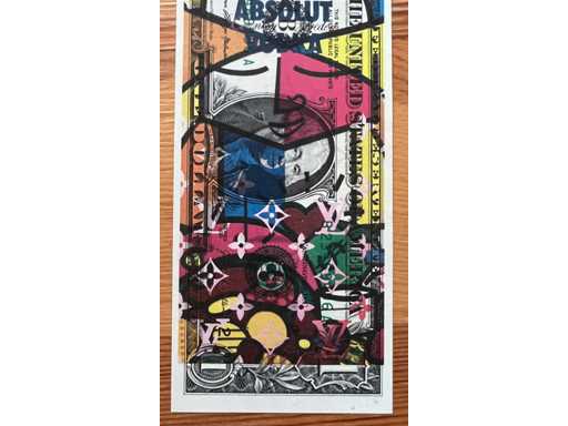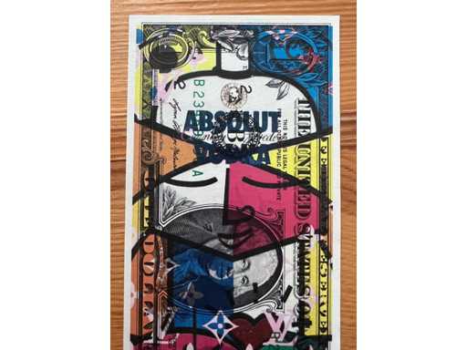 • Hand-dated, signed and numbered work. Made on a real US dollar. Format: 15.7 x 6.8 cm. Limited edition of 100 pieces. Certificate of authenticity and artist's dry-gilt stamp
