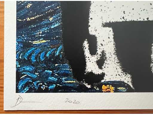 His unique style evokes the influences of Banksy, Basquiat, Warhol and Murakami, combining provocation, humour and urban aesthetics.