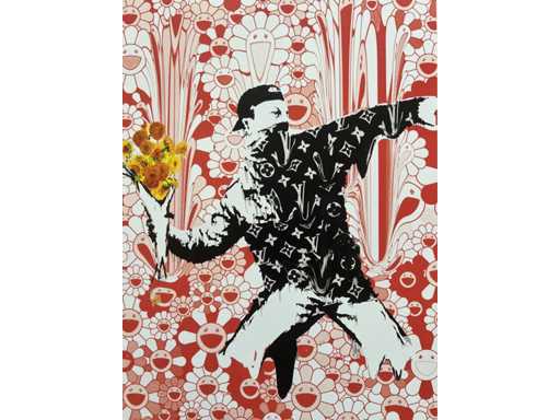 His unique style evokes the influences of Banksy, Basquiat, Warhol and Murakami, combining provocation, humour and urban aesthetics.