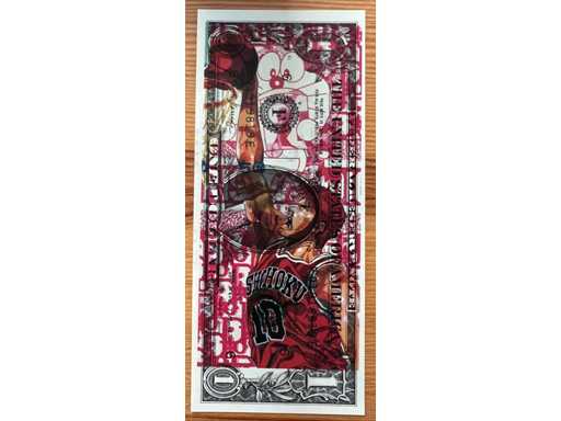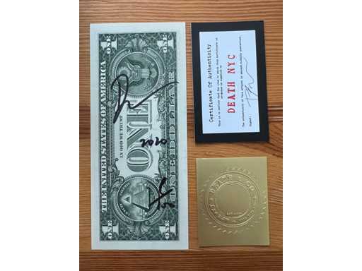 • Hand-dated, signed and numbered work. Made on a real US dollar. Format: 15.7 x 6.8 cm. Limited edition of 100 pieces. Certificate of authenticity and artist's dry-gilt stamp