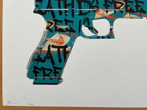 His unique style evokes the influences of Banksy, Basquiat, Warhol and Murakami, combining provocation, humour and urban aesthetics.