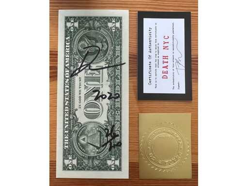 🎁 Prepare your end-of-year gifts now! Bundled shipping in Switzerland and Europe for fast and careful delivery. 🔥 Exclusive artwork by Death NYC – World Street Art Star 💥 Ultra-limited edition – Only 100 pieces Each piece is numbered and hand-signed by the artist (+ Artist's Proof Artist Proofs) 🖼️ * Product Details:* • Hand-dated, signed and numbered work. Made on a real US dollar. Format: 15.7 x 6.8 cm. Limited edition of 100 pieces. Certificate of authenticity and artist's dry-gilt stamp ⚡ *Warning – Very limited quantities**! The works of Death NYC fly away as soon as they are released. Each new edition is taken by storm by collectors — a real must-have for urban art lovers. ** About the artist ** 🎨 A true icon of contemporary street art, Death NYC boldly hijacks the symbols of pop culture: Kobe Bryant, Snoopy, Marilyn Kusama-style... His unique style evokes the influences of Banksy, Basquiat, Warhol and Murakami, combining provocation, humour and urban aesthetics. 💎 Treat yourself to a collector's item An artistic investment and an exceptional gift idea.