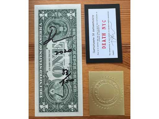 🎁 Prepare your end-of-year gifts now! Bundled shipping in Switzerland and Europe for fast and careful delivery. 🔥 Exclusive artwork by Death NYC – World Street Art Star 💥 Ultra-limited edition – Only 100 pieces Each piece is numbered and hand-signed by the artist (+ Artist's Proof Artist Proofs) 🖼️ * Product Details:* • Hand-dated, signed and numbered work. Made on a real US dollar. Format: 15.7 x 6.8 cm. Limited edition of 100 pieces. Certificate of authenticity and artist's dry-gilt stamp ⚡ *Warning – Very limited quantities**! The works of Death NYC fly away as soon as they are released. Each new edition is taken by storm by collectors — a real must-have for urban art lovers. ** About the artist ** 🎨 A true icon of contemporary street art, Death NYC boldly hijacks the symbols of pop culture: Kobe Bryant, Snoopy, Marilyn Kusama-style... His unique style evokes the influences of Banksy, Basquiat, Warhol and Murakami, combining provocation, humour and urban aesthetics. 💎 Treat yourself to a collector's item An artistic investment and an exceptional gift idea.