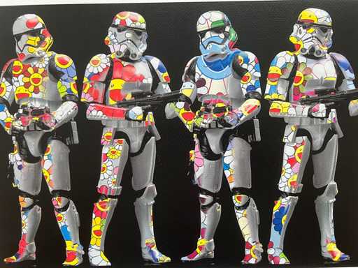 His unique style evokes the influences of Banksy, Basquiat, Warhol and Murakami, combining provocation, humour and urban aesthetics.