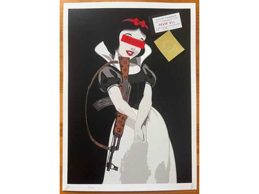 A true icon of contemporary street art, Death NYC boldly hijacks the symbols of pop culture: Kobe Bryant, Snoopy, Marilyn Kusama-style...