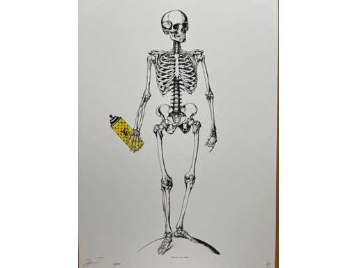 His unique style evokes the influences of Banksy, Basquiat, Warhol and Murakami, combining provocation, humour and urban aesthetics.