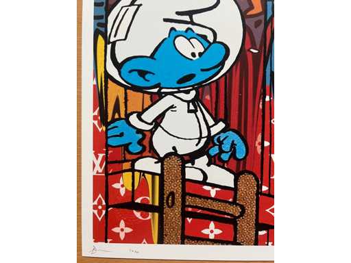 His unique style evokes the influences of Banksy, Basquiat, Warhol and Murakami, combining provocation, humour and urban aesthetics.