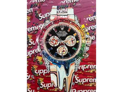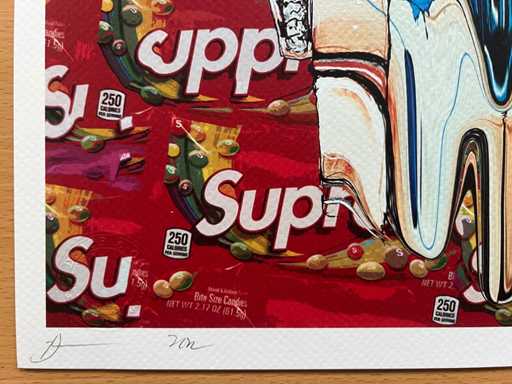 His unique style evokes the influences of Banksy, Basquiat, Warhol and Murakami, combining provocation, humour and urban aesthetics.