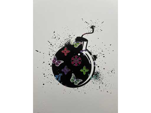 His unique style evokes the influences of Banksy, Basquiat, Warhol and Murakami, combining provocation, humour and urban aesthetics.