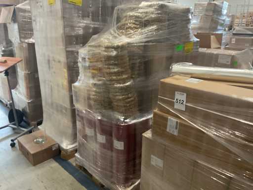 1 dekoracja paletowa składająca się z wieńców, rolek papieru, wiosennego sprayu dekoracyjnego, pudełek na kapelusze, nasadzeń itp., W tym palety.