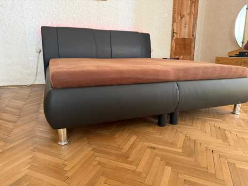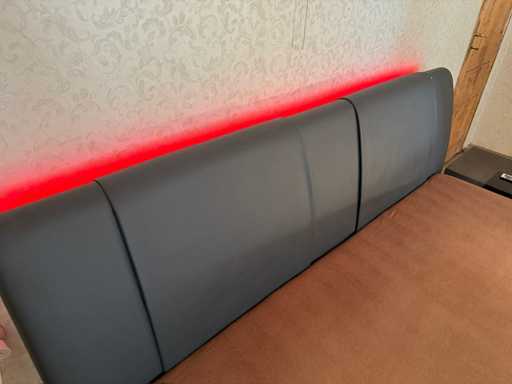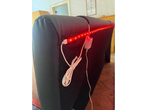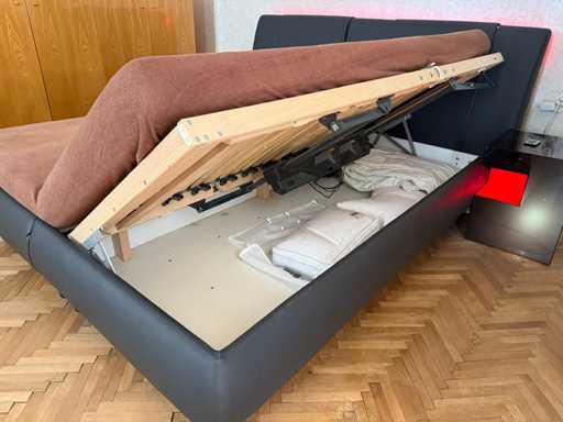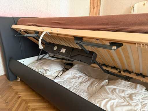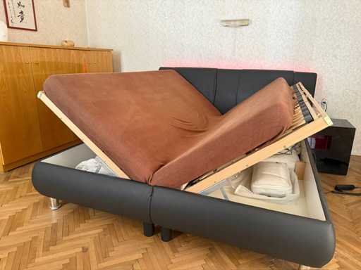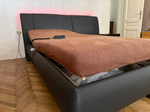 Łóżko Tapicerowane Alessia - Skóra Faux Ciemnoszara Wymiary po rozłożeniu: szer./wys./gł. - 200x100x219 cm Powierzchnia do leżenia: szer./wys./gł. - 180x53x200 cm + Listwa świetlna LED W zestawie rama łóżka z pościelą (dużo miejsca) W zestawie 2x silnik LR 1611 (na lewej powierzchni do leżenia - ten, gdy leżysz na plecach w łóżku - za mała moc, dostosowuje się tylko bardzo wolno; funkcjonalny po prawej!) - > dlatego jest sprzedawany jako "wadliwy" Uszkodzona jedna stopa - tylko wada optyczna - można to ukryć W zestawie 2x materac Windsor - używany Koce lub poduszki (ze schowka, NIE są wliczone w cenę!) Używany - drobne skazy Uwaga: Łóżko jest duże i ciężkie i musi być przenoszone z pierwszego piętra wąskimi schodami przez 23 stopnie - możliwe zaparkowanie przed drzwiami!
