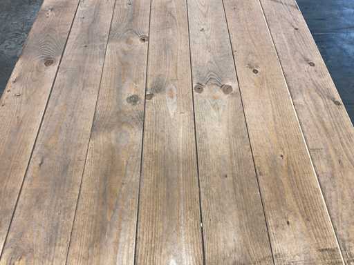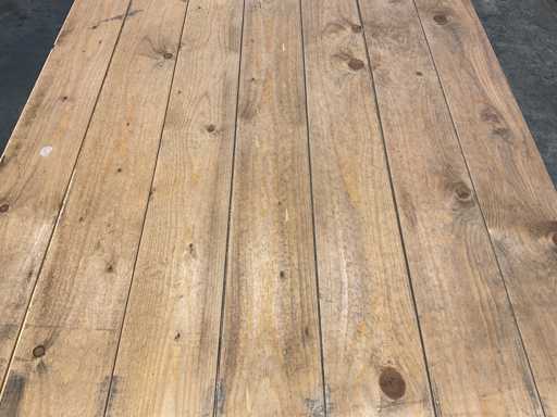 Deski świerkowe gg przylgowe zwisające, o wymiarach 480 x 14,5 x 2 cm każda.