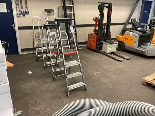 1 drabina z 2x8 stopniami, 4 stopnie z 4 stopniami i 2 stopnie z 3 stopniami