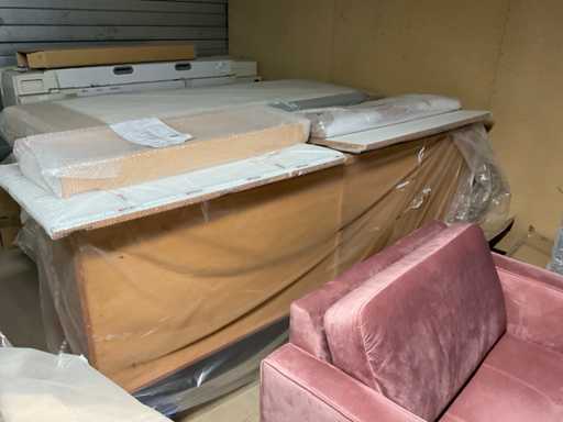 Składa się między innymi: elektrycznie regulowanych foteli, krzeseł, szafek, sof, stołów, dywanów, materacy. Zawiera drukarkę HP.