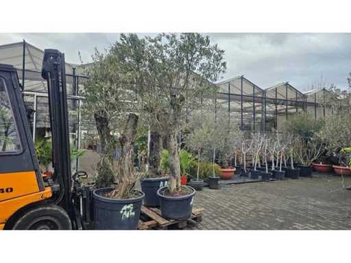 Wnieś ponadczasowy urok Morza Śródziemnego do swojego projektu. Ten niezwykły zestaw składa się z czterech wspaniałych drzew oliwnych (Olea europaea), które imponują swoim wiekiem około 120 lat. Każde drzewo opowiada swoją historię poprzez charakterystyczny, masywny i powykręcony pień. Te wytrzymałe rośliny doskonale nadają się do przekształcenia rozległych ogrodów, wejść do hoteli czy ekskluzywnych tarasów w śródziemnomorską oazę. Srebrzysto-zielone liście i masywna sylwetka czynią je trwałym i cennym elementem każdego projektu ogrodniczego.