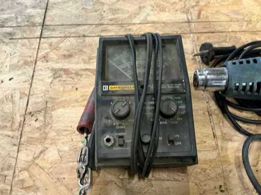 1x wiertarka udarowa Hitachi; 1x opalarka Black & Decker; 1x tester baterii Caterpillar