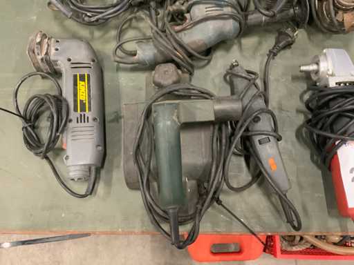W komplecie: 1 strugarka ręczna, 4 szlifierki kątowe, 1 szlifierka oscylacyjna