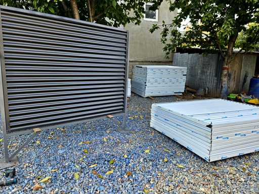 Panele ogrodzeniowe wykonane z blachy falistej 0,8 mm RAL 7023 szary o wymiarach, szerokości 2000, wysokości 1500, 8 paneli 2000x1500. Ładunek wolny