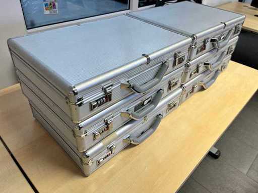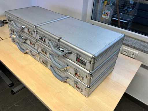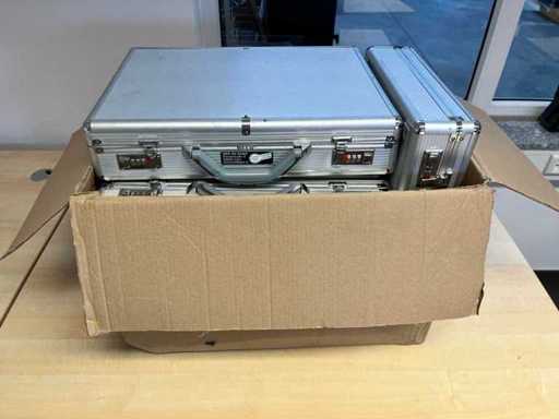 Zestaw 6 obudów na laptopy, aluminiowych, mocno używanych, w pudełku (około wymiarów 65 x 50 x 50 cm)