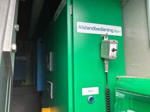 Built in a container equipped with built-up solar panels electrically foldable, 3x "Victron Energy" inverter / charger type Quattro 48V/15000VA/200Amp, 1x "Victron Energy" Smart solar charge controller type MPPT150I85-Tr, central control box with "Siemens" and "Victron Energy" digital controllers and 12x lithium battery