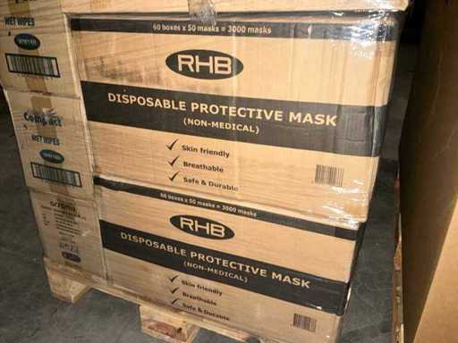 Face masks, face protectors, disinfection gels (mix 3 palettes)