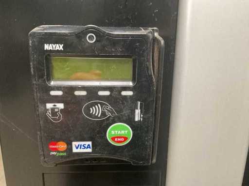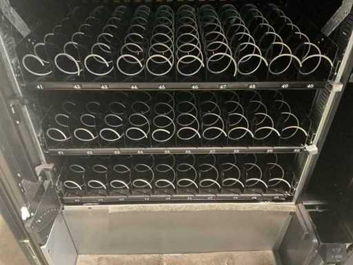 automatyczna skrzynia biegów combi; chłodny; włącznie z terminal Nayax do płatności zbliżeniowej; Oświetlenie LED. 3 szuflady z przekąskami, 3 szuflady z napojami gazowanymi.