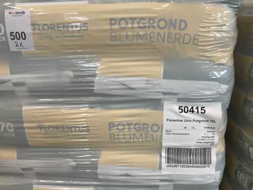 2 palety ziemi doniczkowej, z czego 1 paleta 36 sztuk po 70 litrów i 1 paleta po 240 sztuk po 10 litrów.