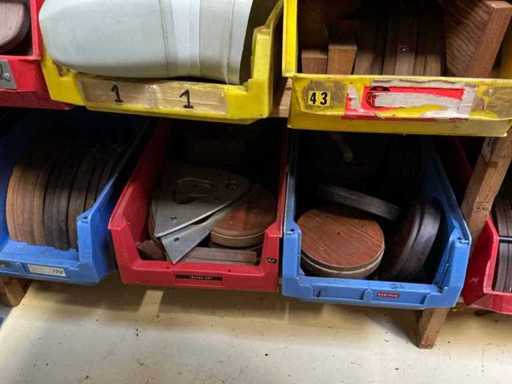 Różne typy i rozmiary w pojemnikach i z pojemnikami. Zawartość stojaka 4-metrowego.