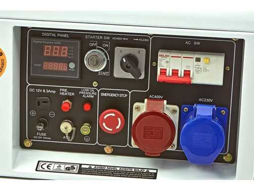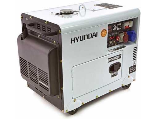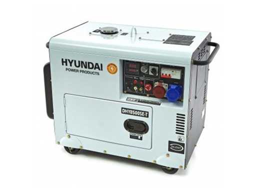 • Prąd jednofazowy i trójfazowy • Odpowiedni dla ATS (automatyczny układ przejściowy) • Ekonomiczne w użytkowaniu, około 1 l/h - Model: 55252 - EAN: 8718502552522 - Silnik: 4-suwowy OHV chłodzony powietrzem - Typ silnika: D500E - Moc silnika: 12 KM - Moc nominalna: 7,5 kVA (400) / 5,5kW (230) - Maksymalna moc: 7,9 kVA (400) / 6,0 kVA (230) - Pojemność: 498 cm³ - System rozruchu: Sterowanie elektryczne/zdalne - Mobilny: Tak, wyposażony w koła - Obecność: 14 A (400)/23 A (230) - Częstotliwość: 50 Hz - Połączenia: 1 x PCE5p (400) 1 x 32 A (230) - Panel cyfrowy: LED 6 - AVR: automatyczny - Paliwo: Diesel - Alternator: A6T/AVR - Godziny pracy na czołg przy 50%: 10 godzin - Pojemność zbiornika paliwa: 12 L - Pojemność złoża ropy: 1,75 L - Ochrona poziomu oleju: Tak - Poziom szumów: 96 dB(A) 7 m - Masa: 159 kg - Wymiary: 960 (l) x 760 (w) x 560 (h) mm Zawartość opakowania; - Agregat diesla Hyundaia z silnikiem diesla 498 cm³ - Różne akcesoria i narzędzia instalacyjne - Instrukcje Hyundaia ;