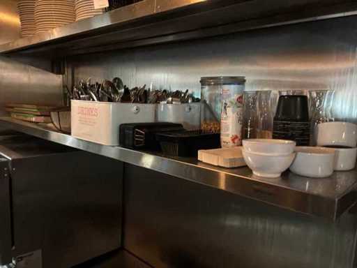 Includes 2x stainless steel shelf, crockery and cutlery.
