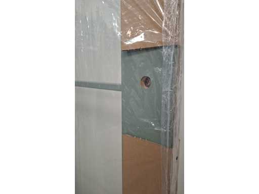 Beautiful door with glass section, finished with a high-quality foil in pastel green. Combined with a frame with the same finish.