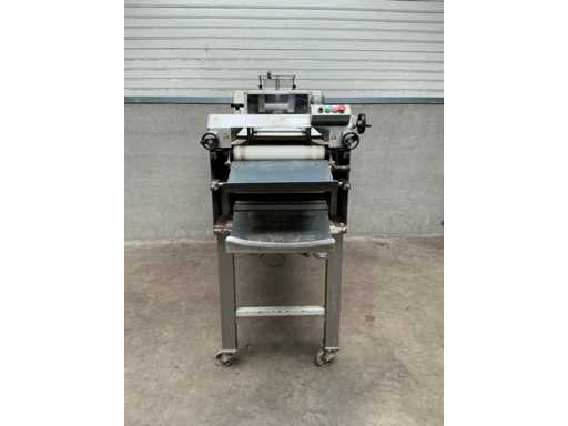 Wyposażony w górną i dolną taśmę, posiada także regulowany wałek wejściowy i górny mostek