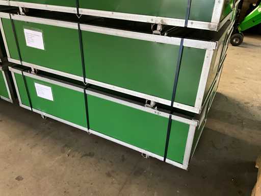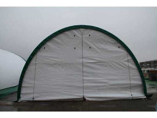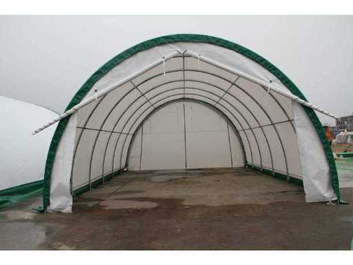namiot / schronienie magazynowe Z systemem pojedynczej rury ocynkowane, rozmiar łuku; 70x42x1,5 mm, płatew; 40 x 1,2 mm, 42 gramy PVC, kolor; Biały, przestrzeń między łukiem; 1525 mm, Drzwi z zamkiem błyskawicznym; 4300 x 3300mm, ręczna, nieużywana w metalowej skrzynce. Wymiary transportowe pudełka: 200x60x60 cm