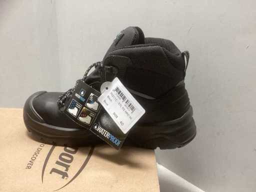 Wodoodporna podszewka Sympatex i podeszwa PU/Nitrile utrzymują stopy suche i stabilne. Ten roboczy but spełnia normę bezpieczeństwa ISO 20345:2004 S3.