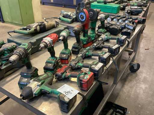 w tym klucze udarowe; maszyna śrubowa/wiertarka; szlifierkę kątową; Latarki i ładowarki do baterii