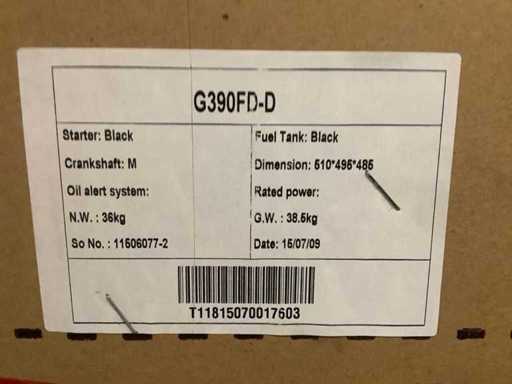 Honda Loncin G390FD-D (=Loncin seria G390 z rozruchom elektrycznym + PTO) Mocny, czterosuwowy silnik benzynowy o pojemności 389 cm³ z rozruchom elektrycznym. Nadaje się do generatorów, pomp, sprzętu budowlanego i kruszyw podobnych do klasy Honda GX390.