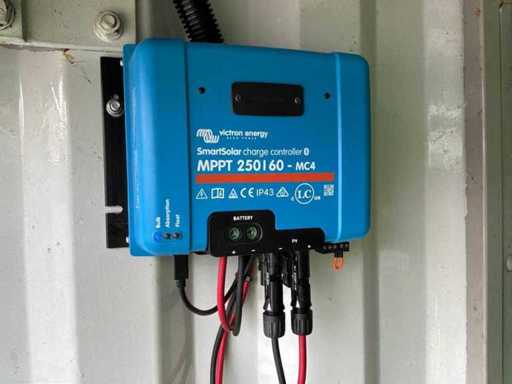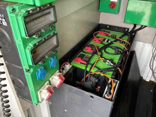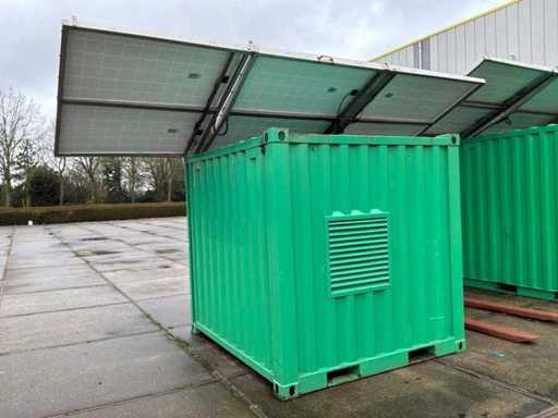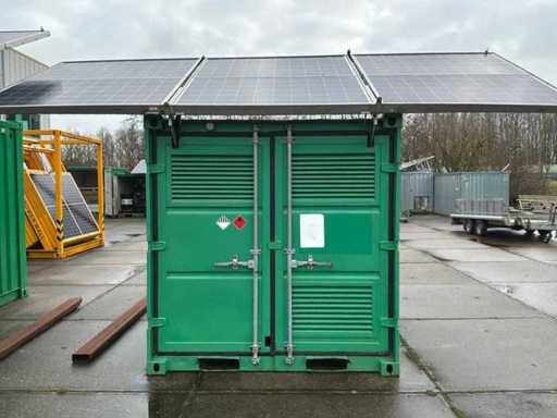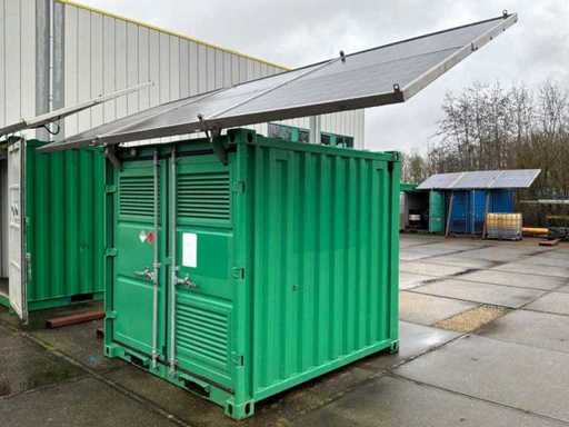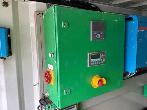 Wbudowany w kontener z wbudowanymi panelami słonecznymi zasilanymi elektrycznie, 3x inwerter/ładowarka typu "Victron Energy" Quattro 48V/8000VA/110A, 1x "Victron Energy" Smart sterownik ładowania słonecznego typu MPPT250I60-MC4, centralna szafa sterująca z cyfrowym sterownikiem "Siemens" i "Victron Energy" oraz bateriami litowymi "Super B"