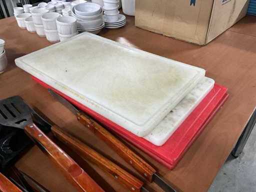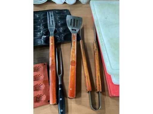 Silikonowe formy do pieczenia, szczypce do grilla i deski do krojenia.