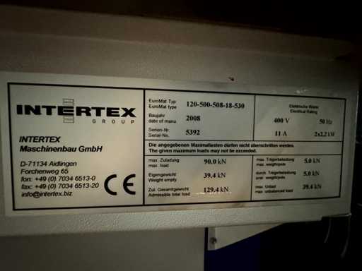 dopuszczalna masa całkowita: 129,4 kN, maksymalna ładowność: 90,0 kN, maksymalne obciążenie belki: 5 kN, wysokość: 5700 mm, całkowicie bez zawartości, więcej szczegółów na zdjęciach tabliczki znamionowej