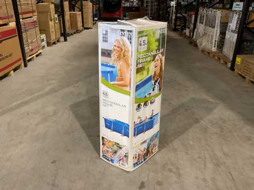 wyposażony w basen naziemny; 3-warstwowe PVC z warstwą poliestrową z siatki; Rama pomalowana na proszku; Kształt: prostokąt; Pojemność 7127 litrów; Zalecana głębokość wody (cm) 76; 5 osób; Połączenie pompy (mm) 32; Długość (cm) 450; Szerokość (cm) 220; Wymiary zewnętrzne LxW (cm) 512 x 281; Wzrost (cm) 84; Grubość ścianki wyściełkowej (mm) 0,56; Grubość dna okładziny (mm) 0,50; Naprawczy; Nieużywane w pudełku (wymiary opakowania transportowe: 450x220x840 mm długość szewxxh, waga 39,2 kg)