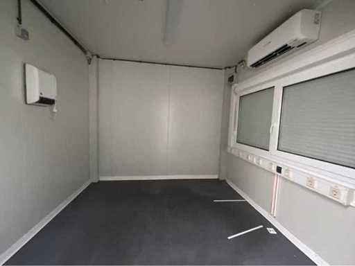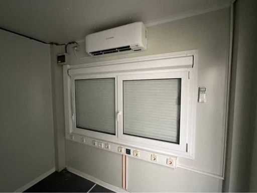 Wyposażony w 1 drzwi, 1 okno z okiennicą, klimatyzację, oświetlenie i elektryczność, stalową ramę; twistlocki; Kupujący musi samodzielnie zadbać o swój transport i otwartą ciężarówkę z dźwigiem załadunkowym