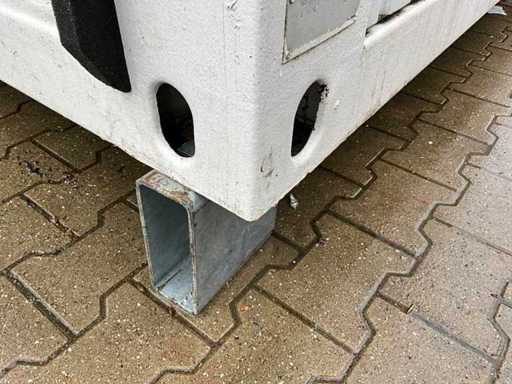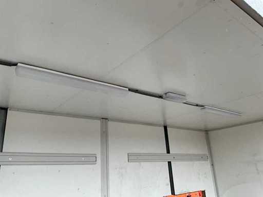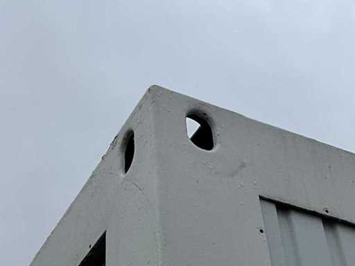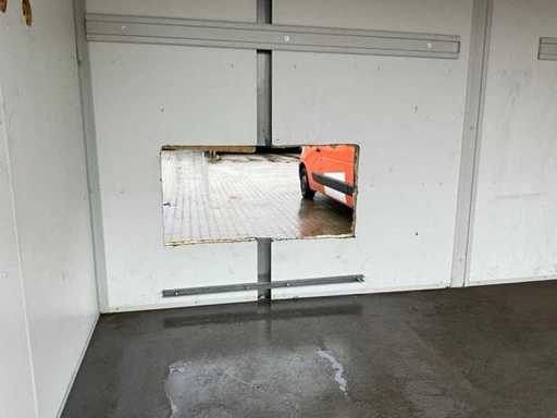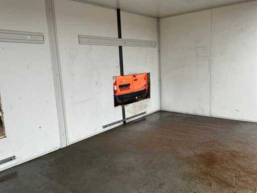 stalowa rama; 1x długa strona bez ściany; 1x długa strona z otworami w ścianie; podłączenie zasilania; oświetlenie; twistlocki; Kupujący musi samodzielnie zająć się swoim transportem i otwartym ciężarówką z dźwigiem załadunkowym;