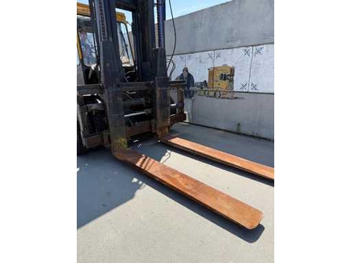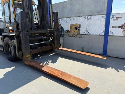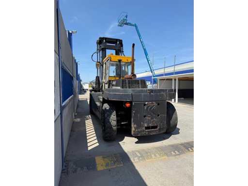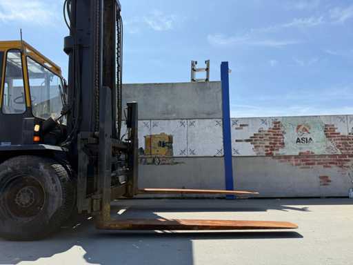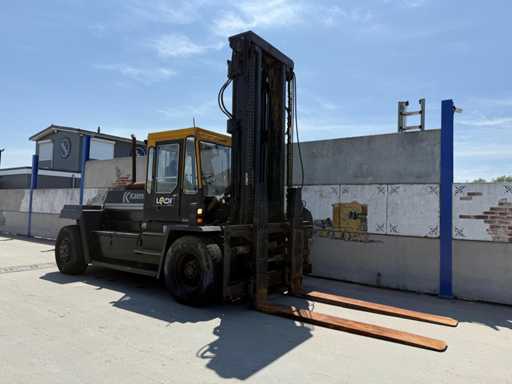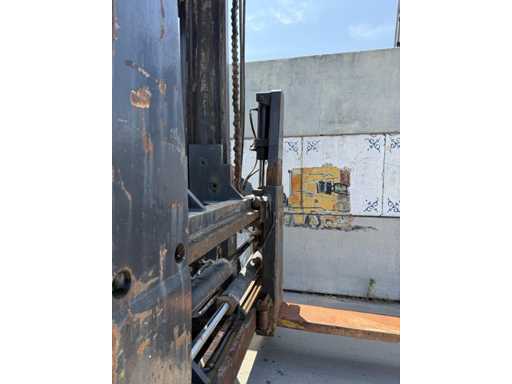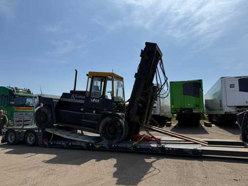 Przemysłowy wózek widłowy o dużej ładowności z 1988 roku, solidnie zbudowany i przystosowany do ciężkich ładunków do 16 ton. Maszyna pochodzi od marki Kalmar, znanej z niezawodnych wózków widłowych do zastosowań portowych, przemysłowych i logistycznych.